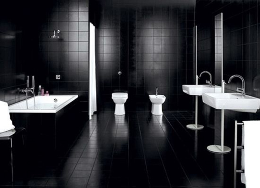 When choosing to use black and other dark colors in your bath, it’s generally recommended that you use a matte finish when possible.This reduces the glare and can help to hide water spots that appear on high gloss surfaces. Other colors like dark brown, blue, and grey can beautifully complement your use of black bathroom tiles and fixtures.