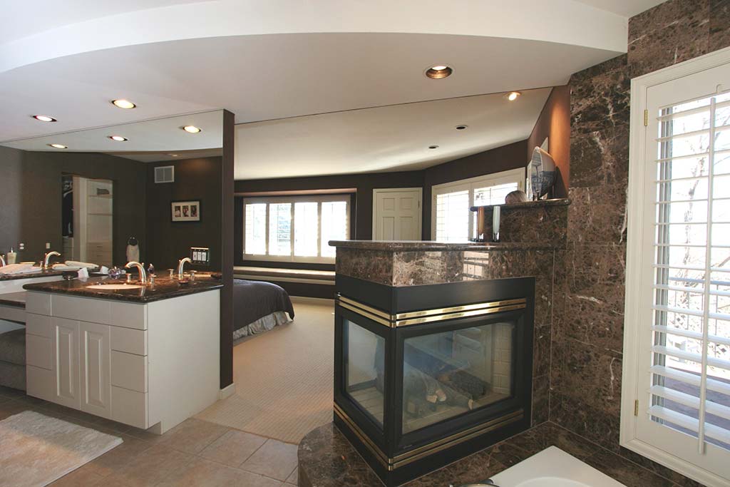 While some may feel like the bathroom should be a private place, others enjoy the option of relaxing in the bath while watching a movie with their partner in bed. Regardless of where you fall on that spectrum, there are many different configurations to create a partial, or fully integrated master suite. For example, placing the toilet in a separate water closet or adding partitions can create varying levels of modesty, while still enjoying the space of an open concept design.