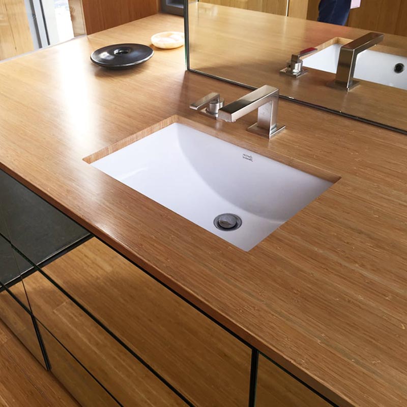Bamboo is another good option for use in the bathroom. Besides being more sustainable than traditional hardwoods, it is more water resistant as well. That said though, we don’t recommend using it in areas of high moisture such as around a shower because it is not 100% waterproof. Be sure to check the manufacturer’s warranty if you are considering using it as flooring in your bathroom.
