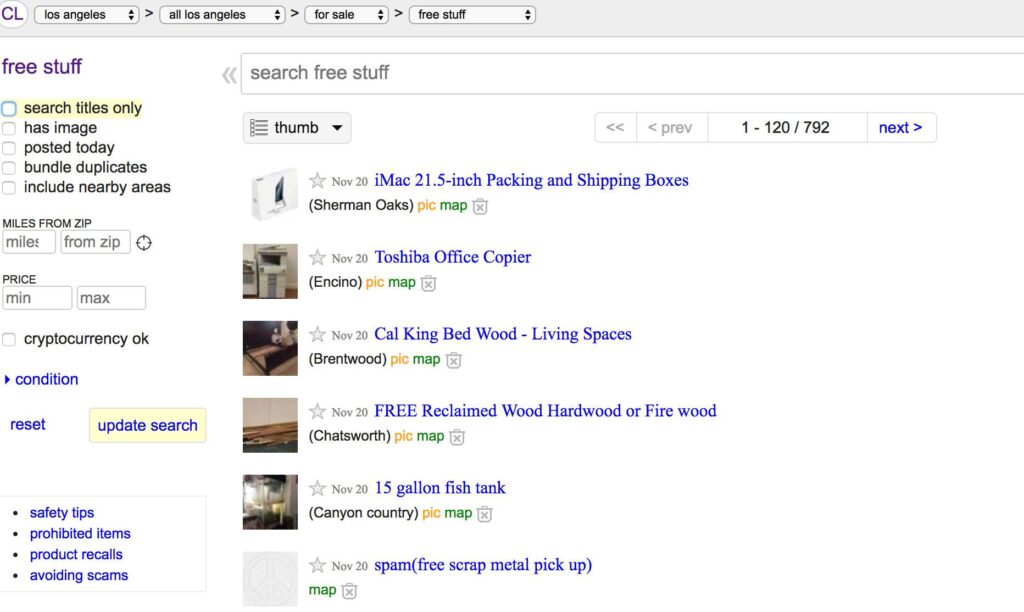 Unlike Craigslist, there is no ‘for sale’ section because the site is dedicated to free items alone.